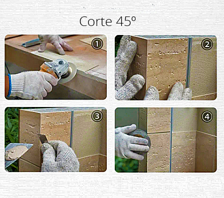 4. Para fazer o canto entre placas, poderá cortar manualmente o chanfro em 45º na parte traseira da placa